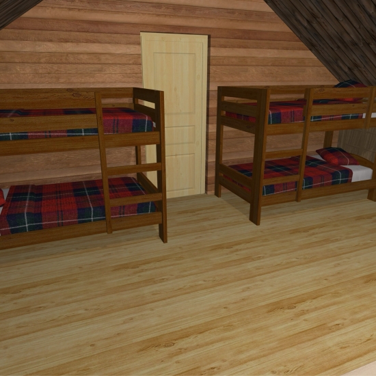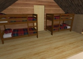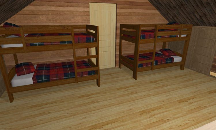 Small bunkie with outdoor shower and homie feel.