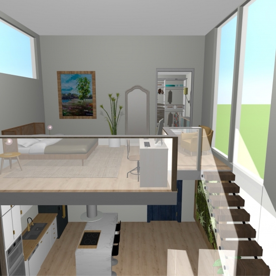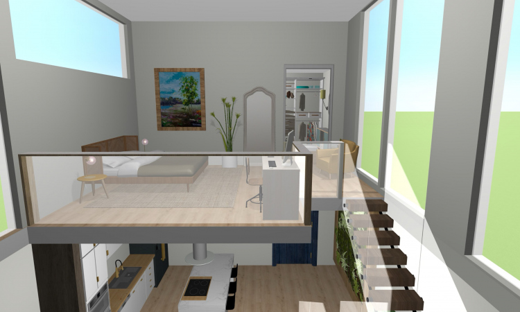 2 storey studio loft with high ceilings and windows all around.