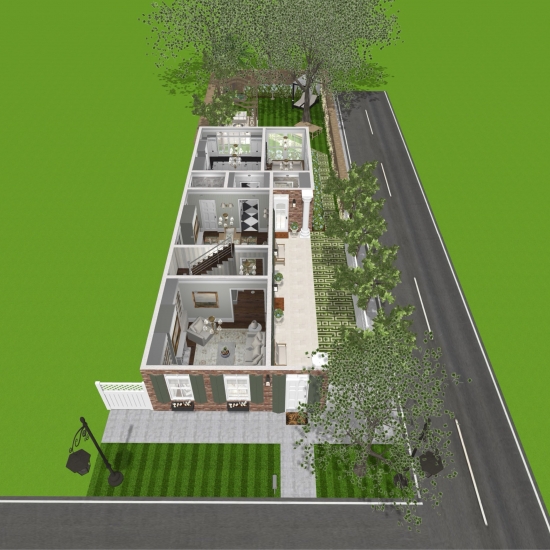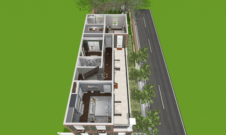 My take on a Classic Charleston Single that has been restored for modern living. The first floor features a Living Room, Dining Room, Powder Room, Kitchen and Sunroom. The second floor has 3 beds and 2 baths. I left the attic unfinished since the home seemed to have everything it needs. What do you think? What would you change or add?