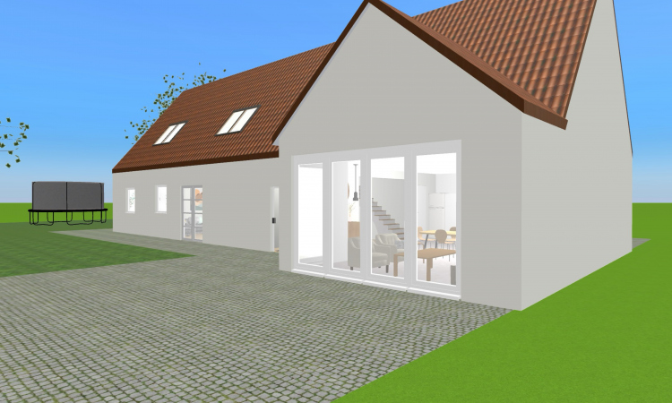 Danish family home with a trampoline and an attic. 1 master bedroom and 2 kid bedrooms.