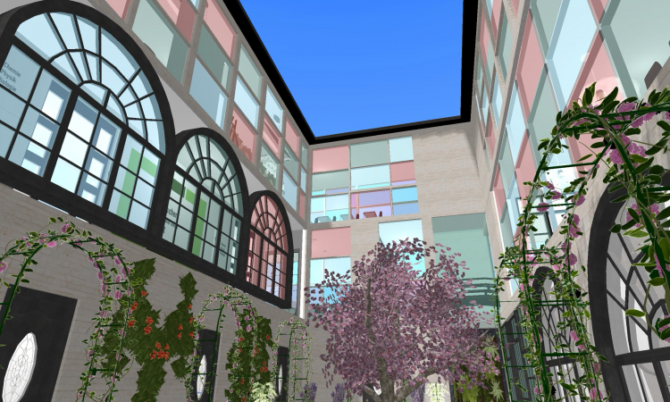 An elite boarding school in Switzerland. Many of the images are AI-generated. It includes: student rooms, a courtyard, classrooms, a concert hall, separate restrooms for boys and girls, kitchens and a dining hall, as well as a gymnasium, an entrance hall, and flower-filled outdoor areas. Admittedly, the Montclair Institute isn't finished yet...