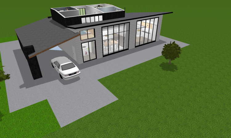 Renovated modern mid century house. Floor to ceiling windows, open floor plan, and large ceilings.