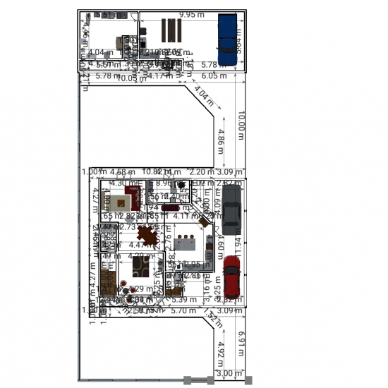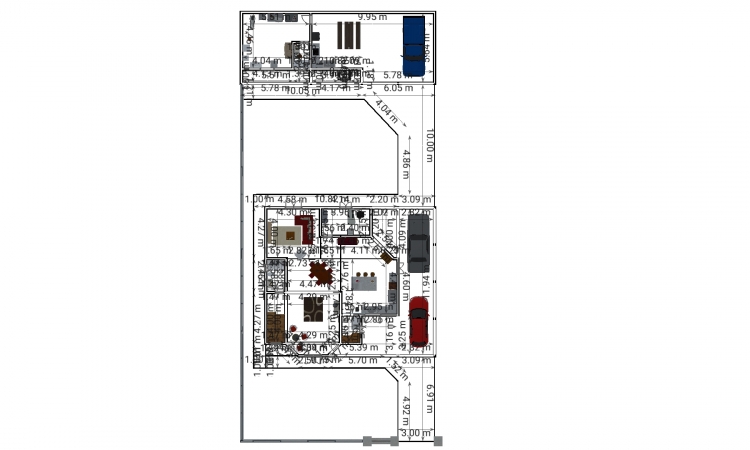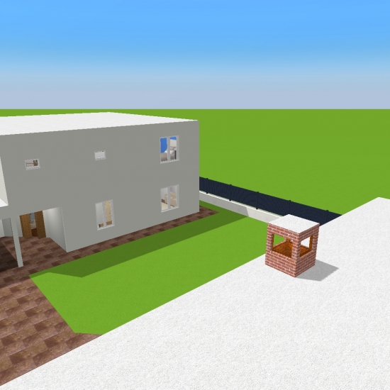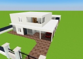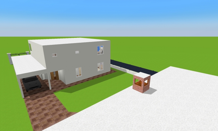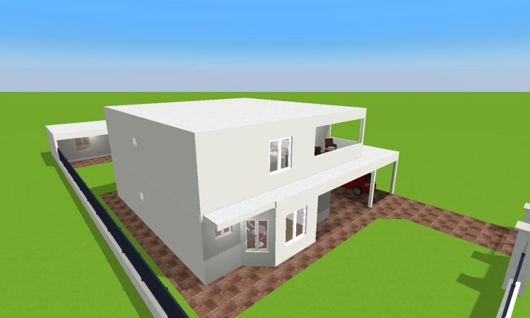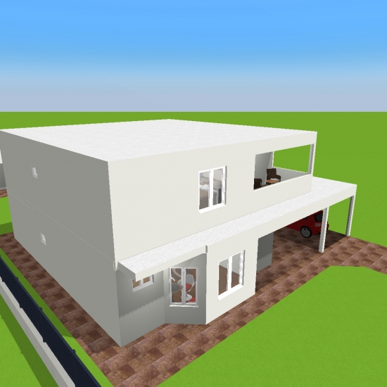 Sobrado com dois quartos e uma suite master com Closet e banheiro para casal contendo sacada , cozinha e sala em plano aberto, contendo um banheiro social com chuveiro no primeiro piso e um escritório, um banheiro social no segundo piso, garagem para dois carros nos fundos e edicula com banheiro e churrasqueira contendo uma lavanderia no mesmo