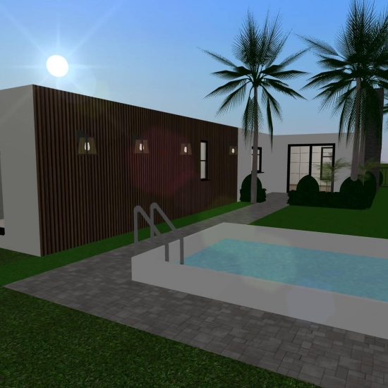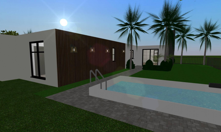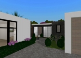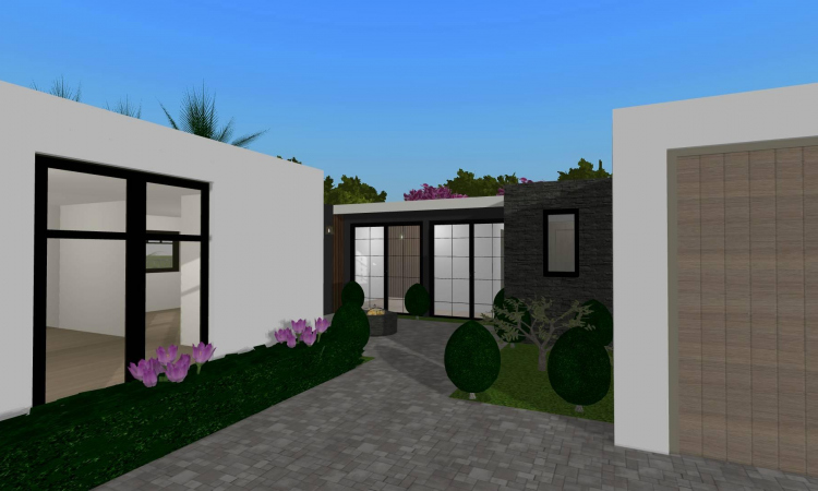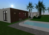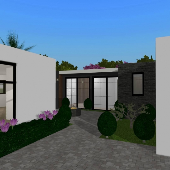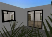 Cozy home moderna de tres habitaciones (una de ellas es la recámara principal), una amplia sala-comedor, cocina, lavandería, tres baños, garaje para dos autos, jardín semi-interior y jardín con piscina. Sin muebles, lista para decorar!!