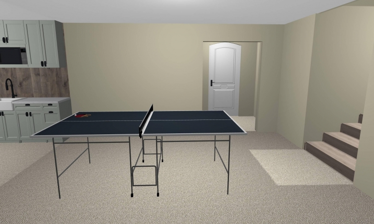 Renovated Basement with Bedroom, Bathroom, Kitchen, Living Area, Storage Rooms, And Ping Pong Table