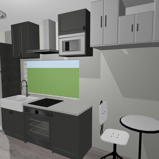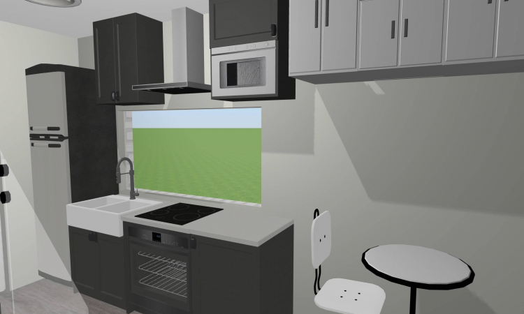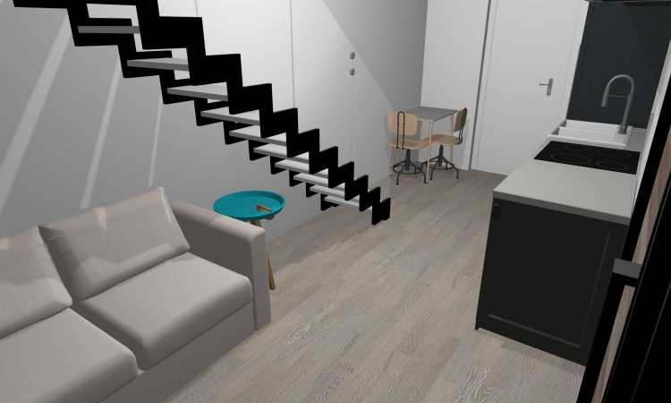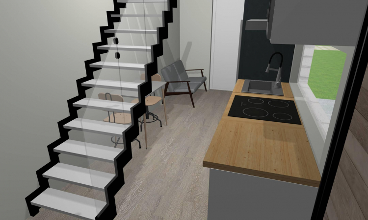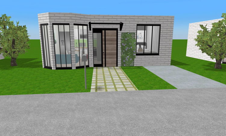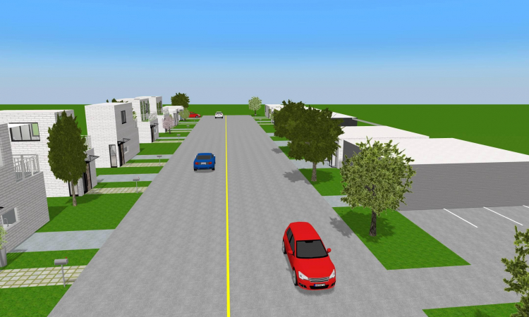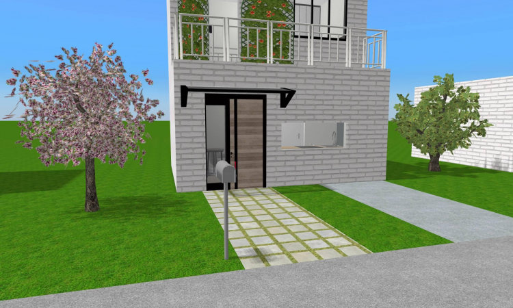 Street of mini house with shop and grocery store.