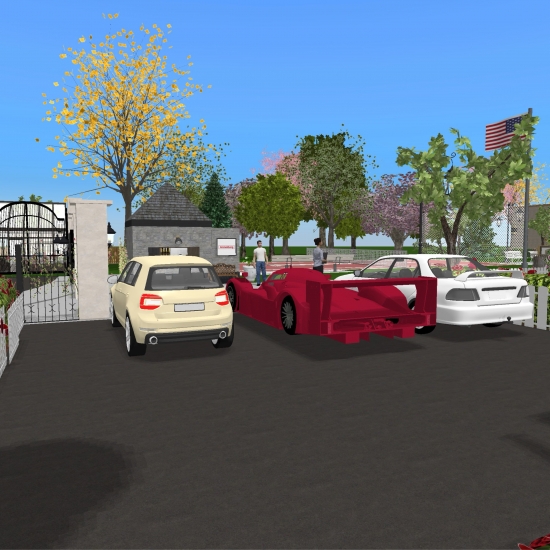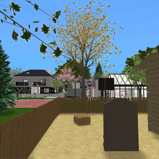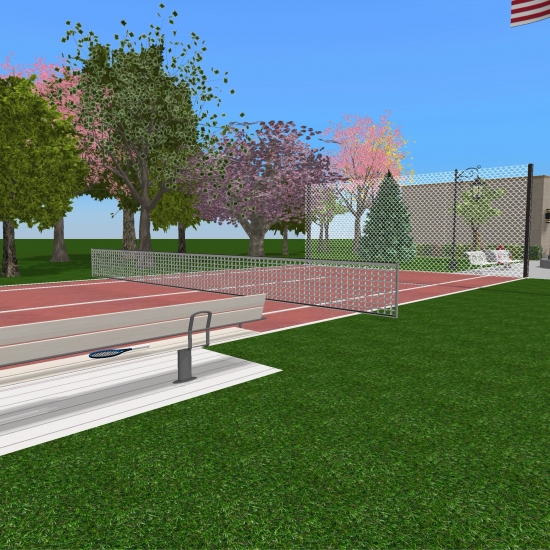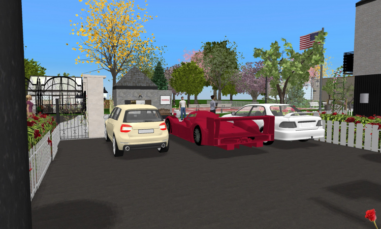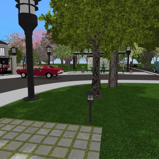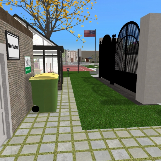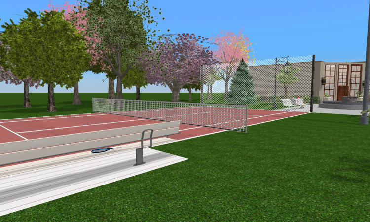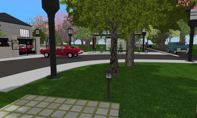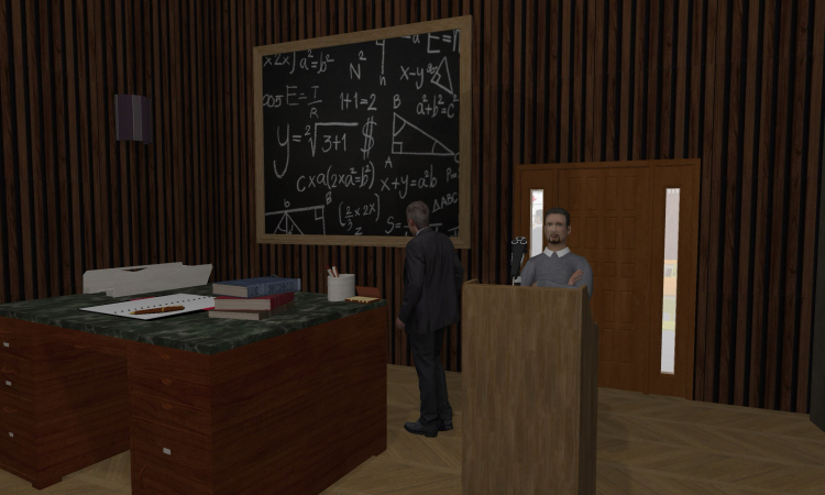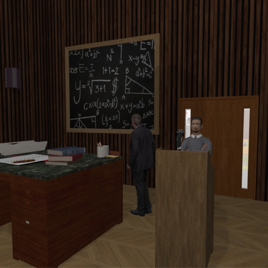 A university campus with a gymnasium, reading hall, and libary